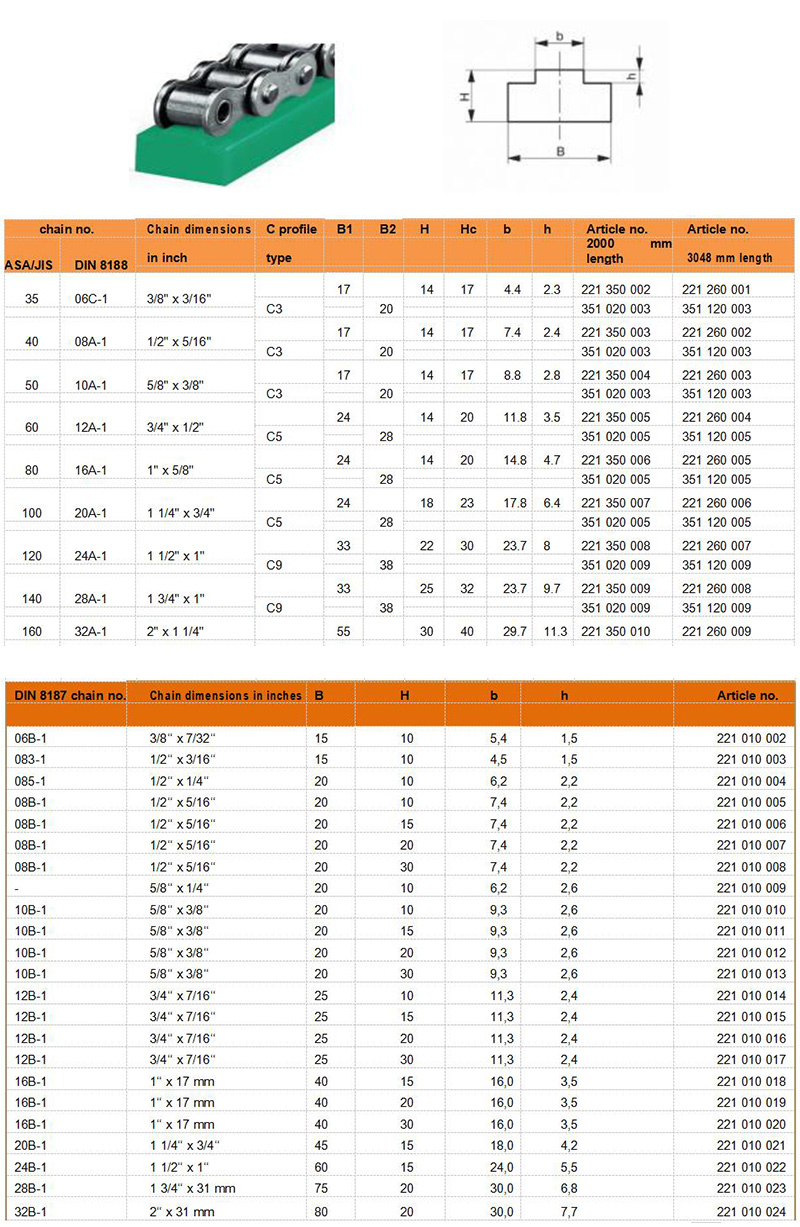 名稱:T型單排聚乙烯耐磨鏈條導軌